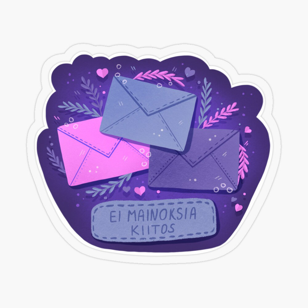 A collection of 'ei mainoksia, kiitos' stickers for my RedBubble shop.